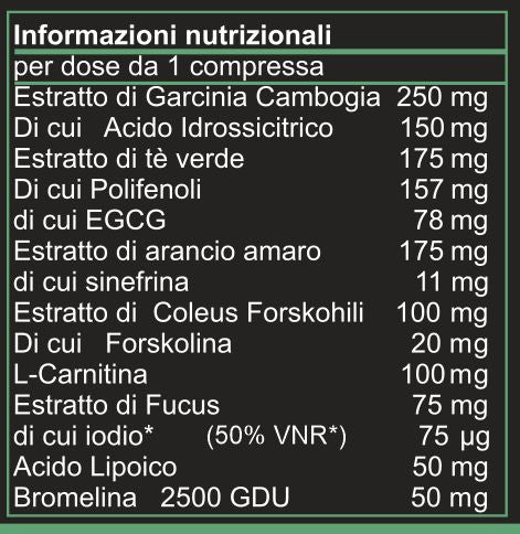 AVVERTENZE: Non superare la dose giornaliera consigliata. Gli integratori alimentari non vanno intesi come sostituti di una dieta variata. Una dieta varia ed equilibrata e uno stile di vita sano sono importanti. Tenere fuori dalla portata dei bambini al di sotto dei tre anni. Non utilizzare in gravidanza e durante l’allattamento o comunque per periodi prolungati senza sentire il parere del medico. Deve essere impiegato nell’ambito di una dieta ipocalorica nutrizionalmente adeguata seguendo uno stile di vita sano. Se la dieta viene seguita per periodi prolungati, si consiglia di sentire il parere del medico. Non somministrare al di sotto dei 18 anni. Consultare il medico prima dell’uso se le condizioni cardiovascolari non sono nella norma e se si stanno assumendo farmaci diuretici. Non consumare un quantitativo giornaliero pari o superiore a 800 mg di Epigallocatechine al giorno. Non deve essere consumato se nello stesso giorno si consumano altri prodotti contenenti tè verde.Non deve essere consumato a stomaco vuoto.Non superare l'assunzione giornaliera di 400 mg di caffeina da tutte le fonti. Non assumere il prodotto prima di coricarsi o nelle ore subito precedenti al sonno e in concomitanza all’assunzione di alcolici. Qualora a seguito dell’uso del prodotto insorgano dei disturbi, a carico della funzione epatica o del sistema nervoso centrale, interrompere l’assunzione e sentire il parere del medico. Conservare in luogo fresco e asciutto. Evitare l'esposizione a fonti di calore e a raggi solari.